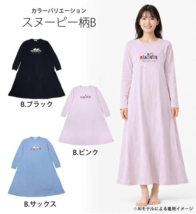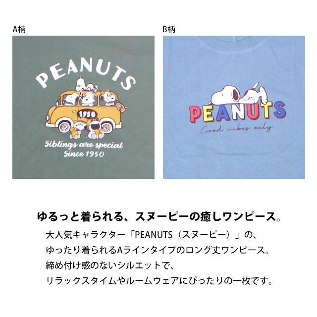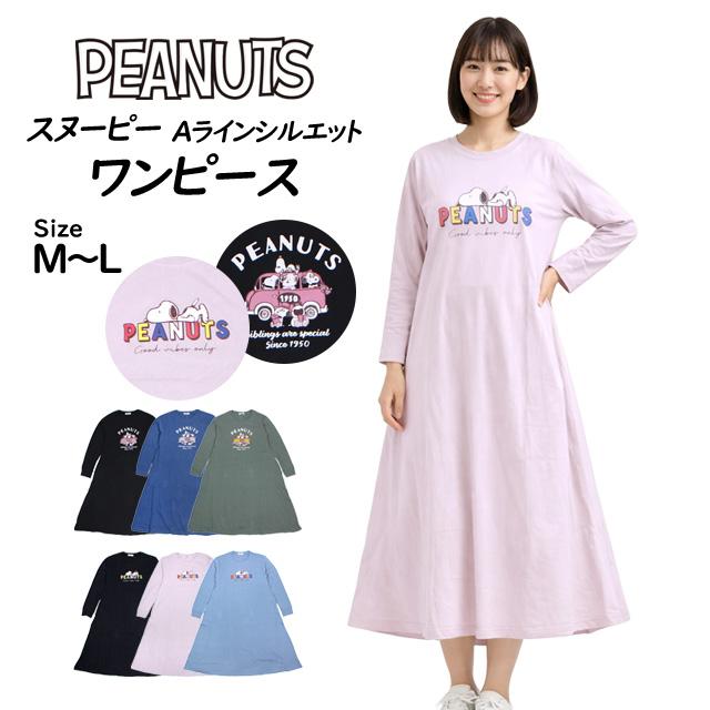 ロングTシャツ ワンピース 長袖 PEANUTS スヌーピー Aライン ルームウェア レディース ユニセックス ゆったり 普段着 M L