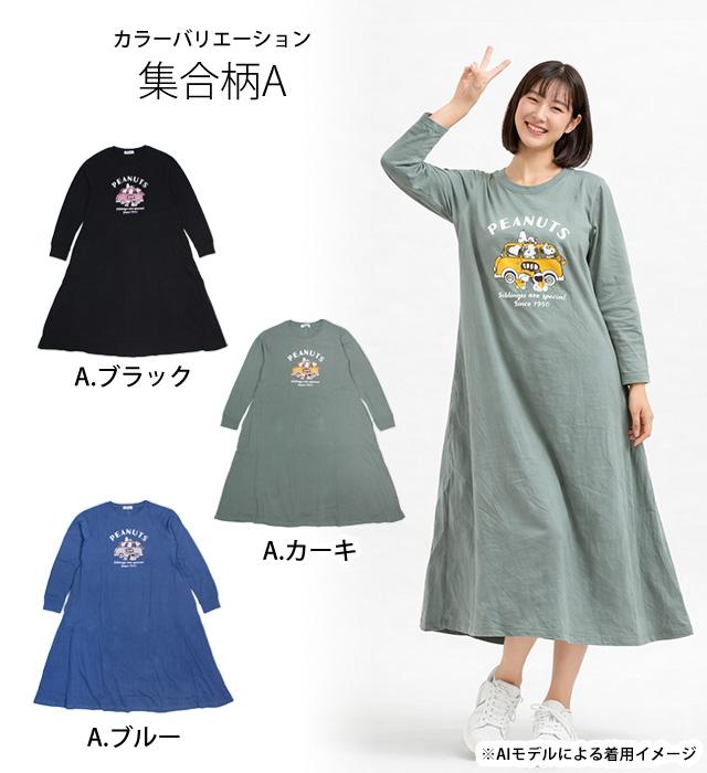| ロングTシャツ ワンピース 長袖 PEANUTS スヌーピー Aライン ルームウェア レディース ユニセックス ゆったり 普段着 M L |