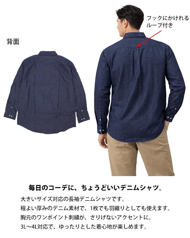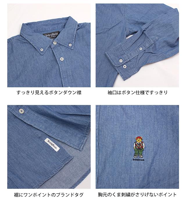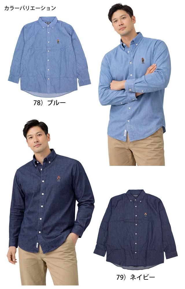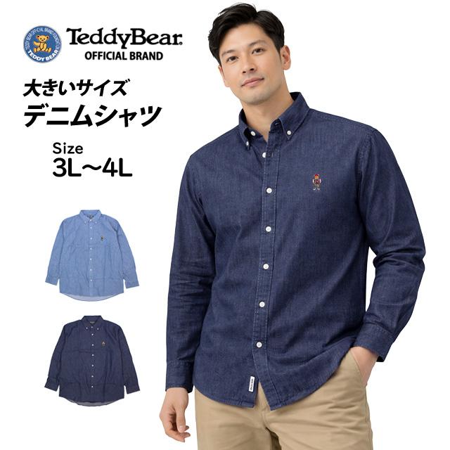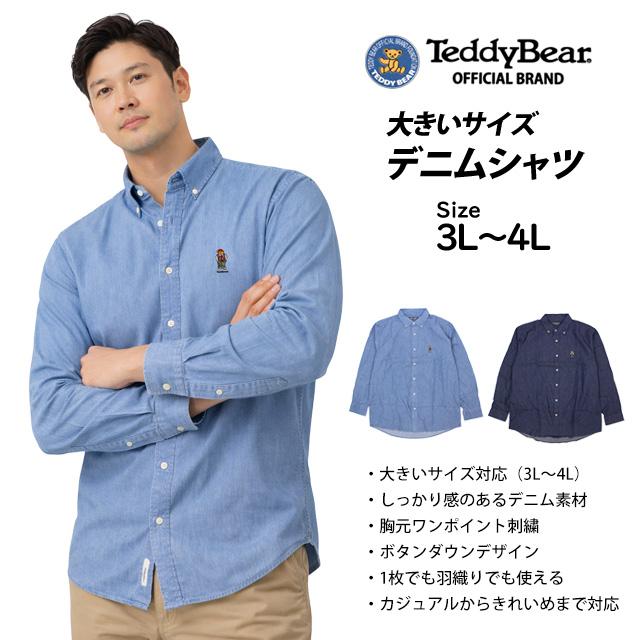 長袖シャツ デニムシャツ TeddyBear テディベア ボタンダウン メンズファッション トップス カジュアル 大きいサイズ 長袖 3L 4L