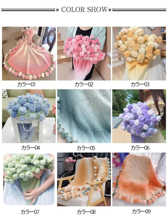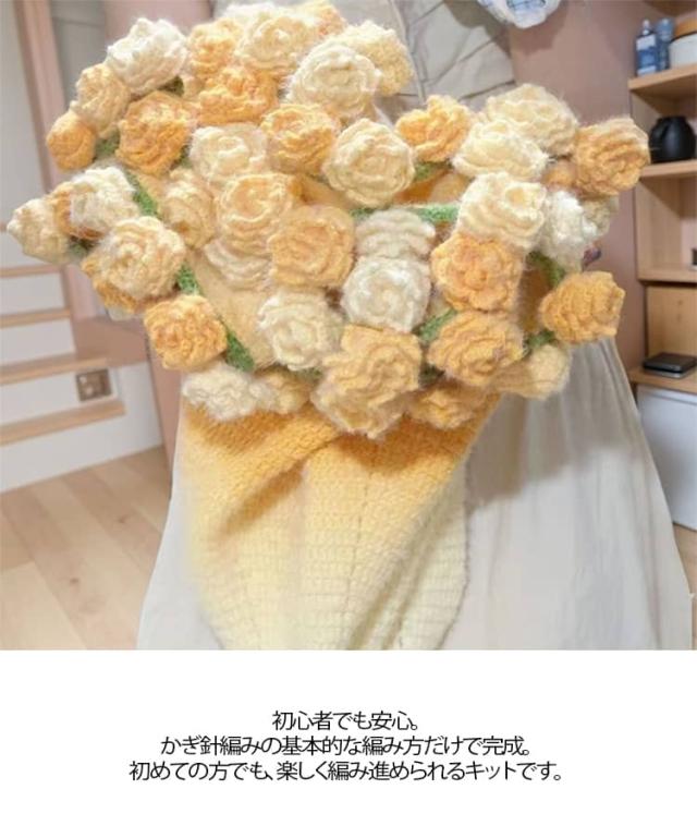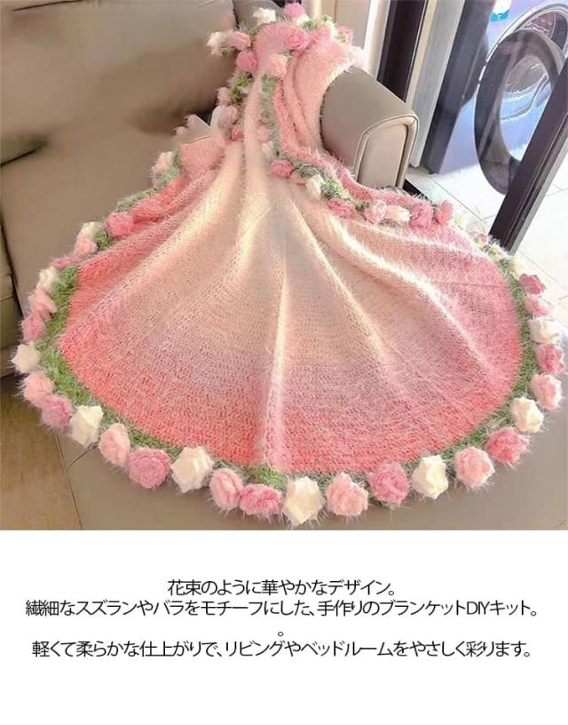 DIY スズラン バラ 花束ブランケット 花束ブランケット フラワー 100cm 手作り セット 誕生日 かぎ針編みキット 毛糸 ブーケブランケット 柔らかい 初心者向け 編み物 花束の毛布 グラデーション バレンタインデー 母の日 父の日 ギフト プレゼント 贈り物 かわいい