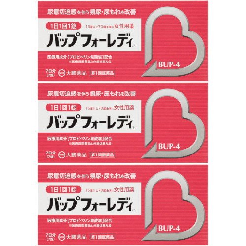 バップフォーレディは、膀胱の異常収縮を抑制することで、尿意切迫感、尿意切迫感を伴う頻尿や尿もれを改善する女性専用のお薬です。これら過活動膀胱症状によって低下した日常生活を向上することができます。