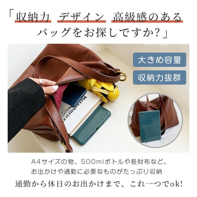 【高品質 】ショルダーバッグ トートバッグ レディース 大きめ かばん 大容量 A4 斜め掛け バッグ 肩掛け 軽量 上品 高級感 カジュアル お洒落 横型 無地 PU コンパクト フェイクレザー メッセンジャーバッグ シンプル 秋冬 通勤 通学