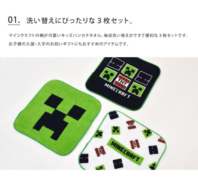 メール便送料無料 マインクラフト ミニタオル3枚セット 【 ハンカチ セット タオル タオルハンカチ ハンドタオル ミニ 小さめ 16×16 正方形 幼稚園 小学生 小学校 キッズ 子供 男の子 Minecraft マイクラ ゲーム キャラクター 入園 入学 ギフト プレゼント】