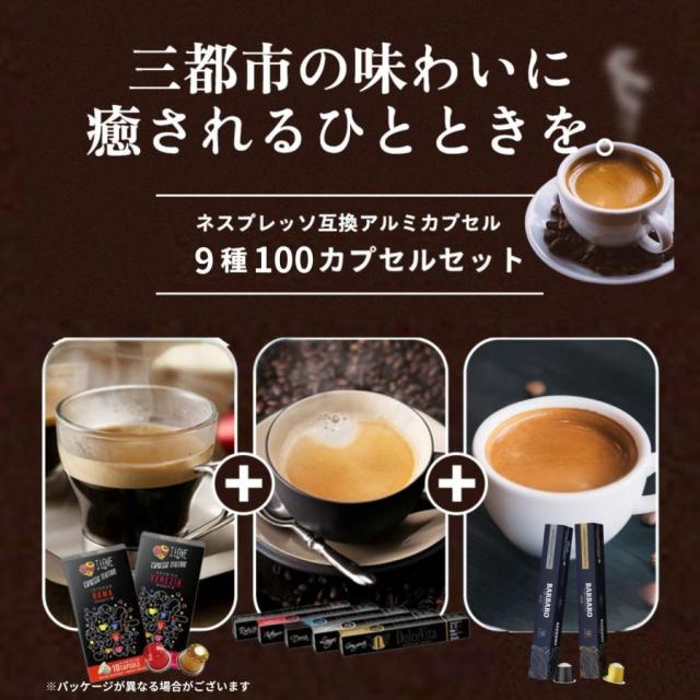 ネスプレッソ互換カプセル9種100杯分 福袋 イタリア製 コーヒー アルミカプセル セット カプセル 互換カプセル ネスプレッソカプセル 送料無料 イタリア三都市飲み比べ