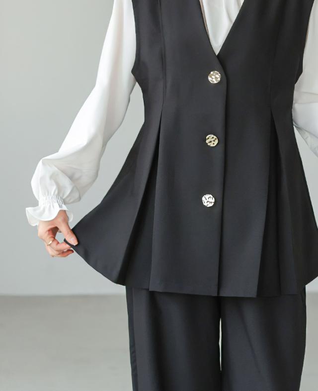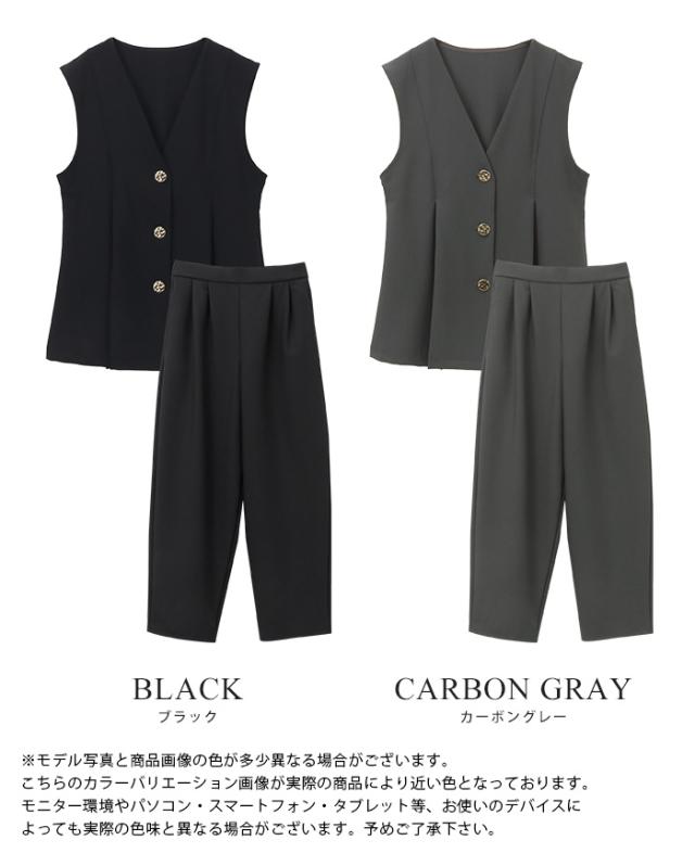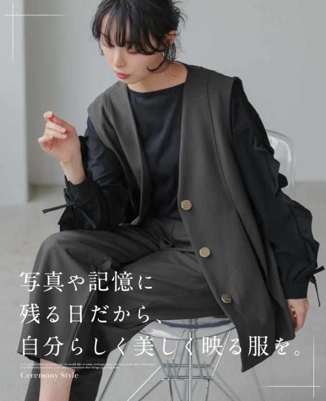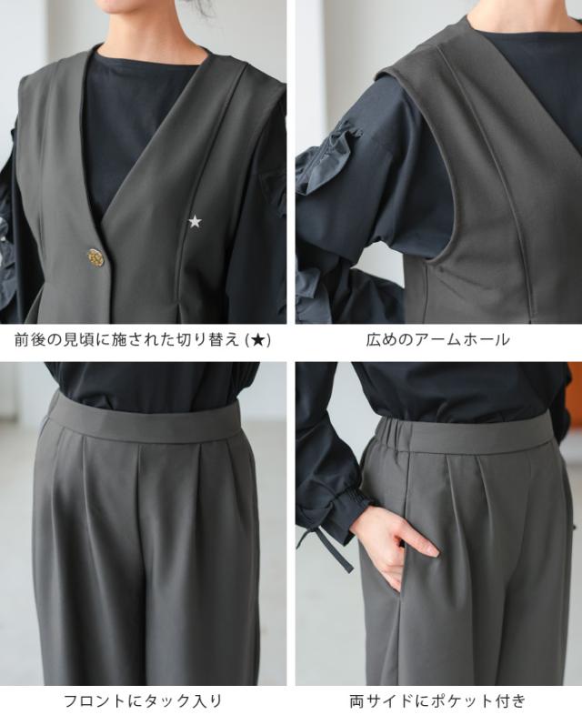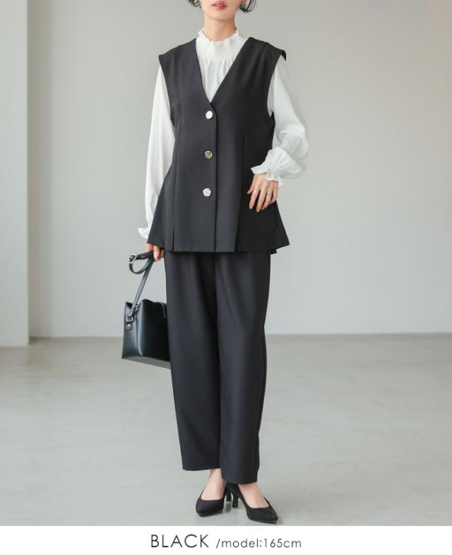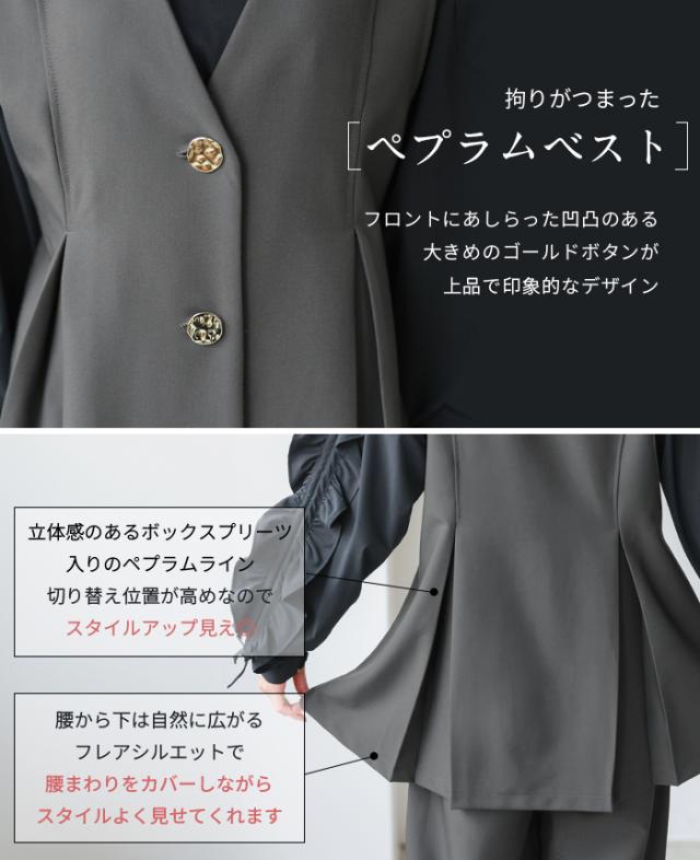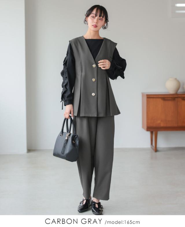 [新作限定P10%×送料無料]ゴールドボタンベスト&コクーンパンツセットアップ レディース 2点 セット オケージョン【メール便不可】
