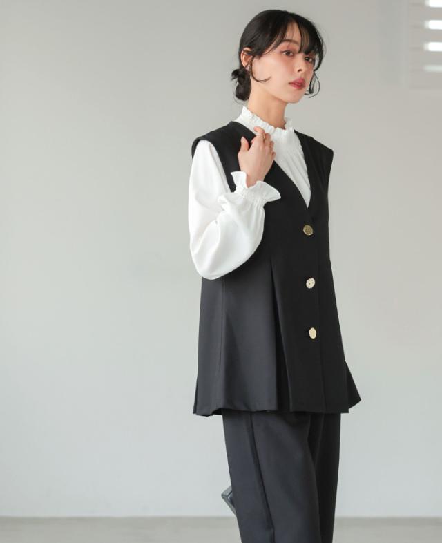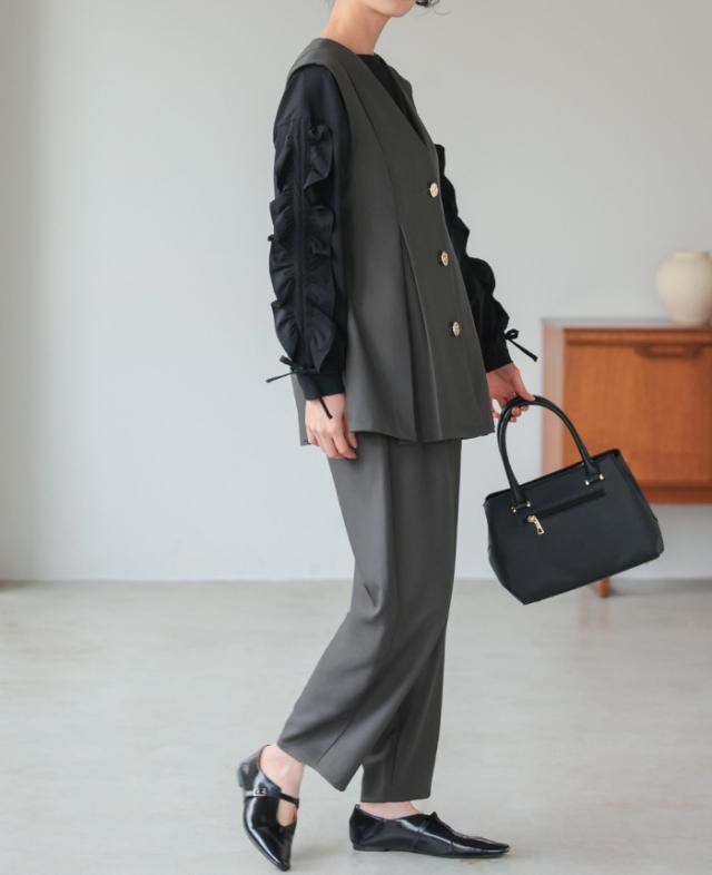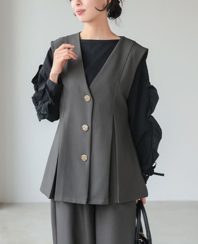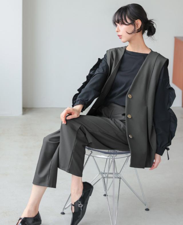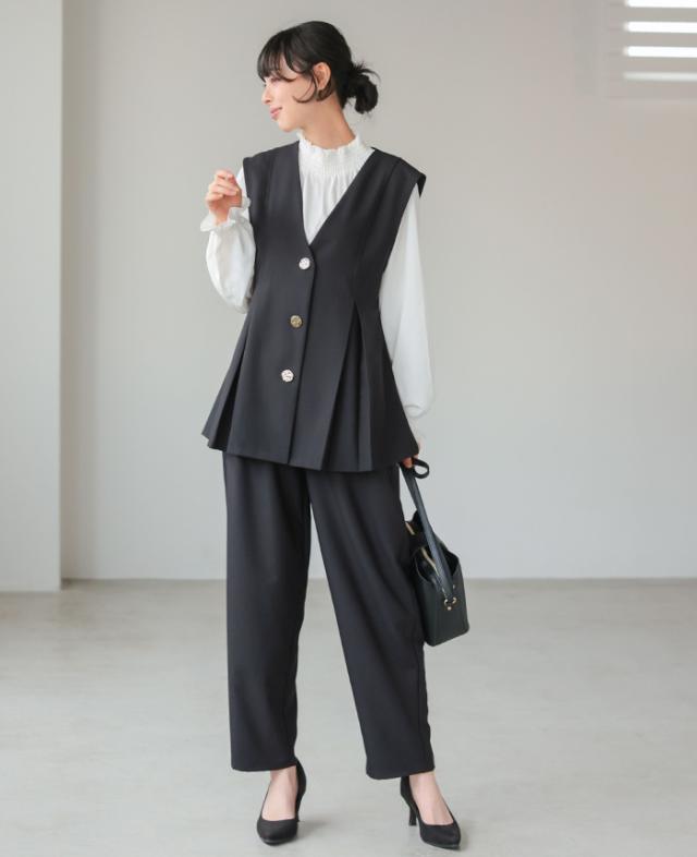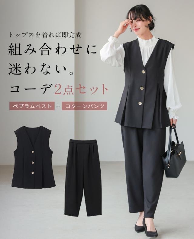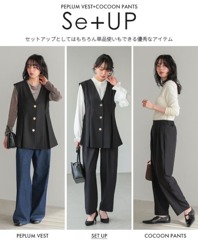 [新作限定P10%×送料無料]ゴールドボタンベスト&コクーンパンツセットアップ レディース 2点 セット オケージョン【メール便不可】