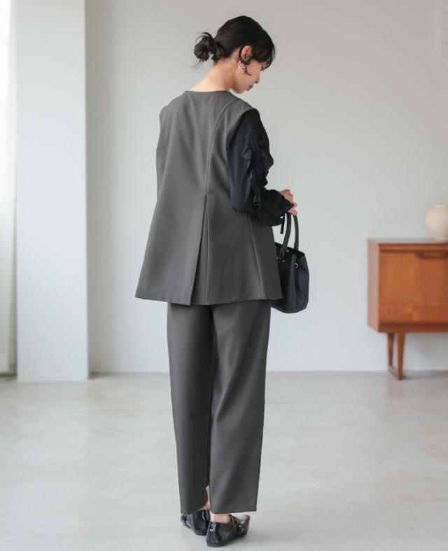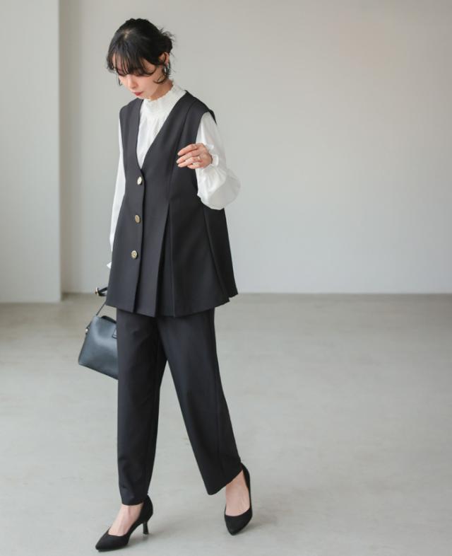 ■Attention ※ご覧になるモニターや環境により実際の商品と色味が異なる場合がございます。予めご了承ください。 ※実寸サイズは平置きメジャー採寸のため若干の誤差が生じる場合がございます。 ※お取り扱い・お洗濯につきましては、付属の商品タグをご使用前に必ずご確認下さい。 ※濃色の商品は色落ち・移染する可能性がございますので、お取り扱いにはご注意下さい。 ※繊維製品のため、同じ商品であっても生産時期やカラーによって伸縮率・生地感・色味が多少異なる場合がございます。特にニット製品に関してはプレス・洗い加工等で5cm前後の誤差が生じる場合がございます。 これらは品質上問題はございません。予めご了承下さい。 ■Staff comment AI/身長:154cm(普段のサイズ:M-L) 体型:骨格ストレート 全体的に厚みのある、産後体型。 トップスはMサイズを選ぶ。 ウエストと腰回りが大きく、ボトムはLサイズを選ぶこともあります。 ・ベスト 【着丈】ヒップ下5cm。 【バスト】ゆったり。 ・パンツ 【総丈】床上ギリギリの長さ。 【ウエスト】少しゆとりあり。 【ヒップ】ゆったり。 【一言コメント】 ゴールドボタンで華やかな感じなので、入卒業式で着たいです。 AYA/身長:158cm(普段のサイズ:M) 体型:骨格ウェーブ 上半身筋肉質の標準体型。肩幅は広くバストは平均。 ウエストは細くヒップが大きいので、 ヒップに合わせてボトムは選びます。 ・ベスト 【着丈】ヒップ下3cm 【バスト】ゆったり。 ・パンツ 【総丈】床上2cmぐらい。 【ウエスト】ゆったり。 【ヒップ】かなりゆったり。 【一言コメント】 ゴールドボタンがアクセントになって、高見えします。 RISA/身長:165cm(普段のサイズ:L-LL) 体型:骨格ナチュラル 体に厚みがあるやや痩せ型。 バスト・ウエスト・ヒップは標準ですが、 肩幅が広くて腕が長め、ふくらはぎは筋肉質。 身長が高いため普段Lサイズを選びます。 ・ベスト 【着丈】ヒップが隠れる長さ。 【バスト】ゆったり。 ・パンツ 【総丈】くるぶし丈。 【ウエスト】ぴったり。 【ヒップ】少しゆったり。 【一言コメント】 ベストのプリーツで細見えし、気になる所をカバーしてくれるのが嬉しいです。 |