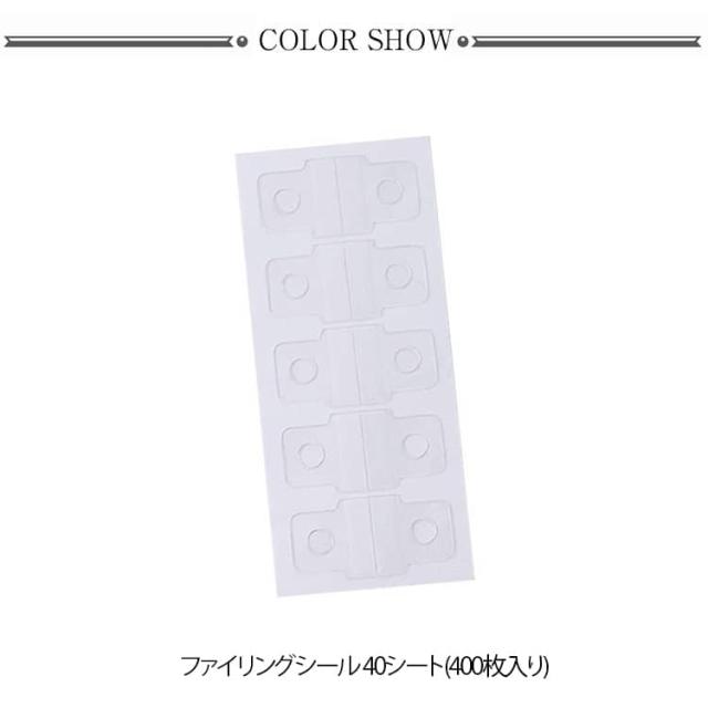 | 穴を開けたくないものもファイリングできる、フック400枚セット♪ 売られているの台紙にそのままつけられるのがとても便利です。 ファイルの形状を問わない1つ穴タイプ。 ぷっくりがしっかり貼れる、バインダー金具に干渉しにくいカットで使いやすい。 透明タイプなので、作品のイメージも損ねず、ハンドメイド作品の陳列にオススメです。 | |
