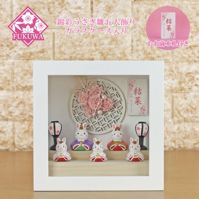 雛人形 ケース飾り ケース入り うさぎのお雛様【錦彩うさぎ雛飾り ガラスケース入り 五人飾り 2597-730】初節句 ひなまつり ひな祭り コンパクト おしゃれ かわいい