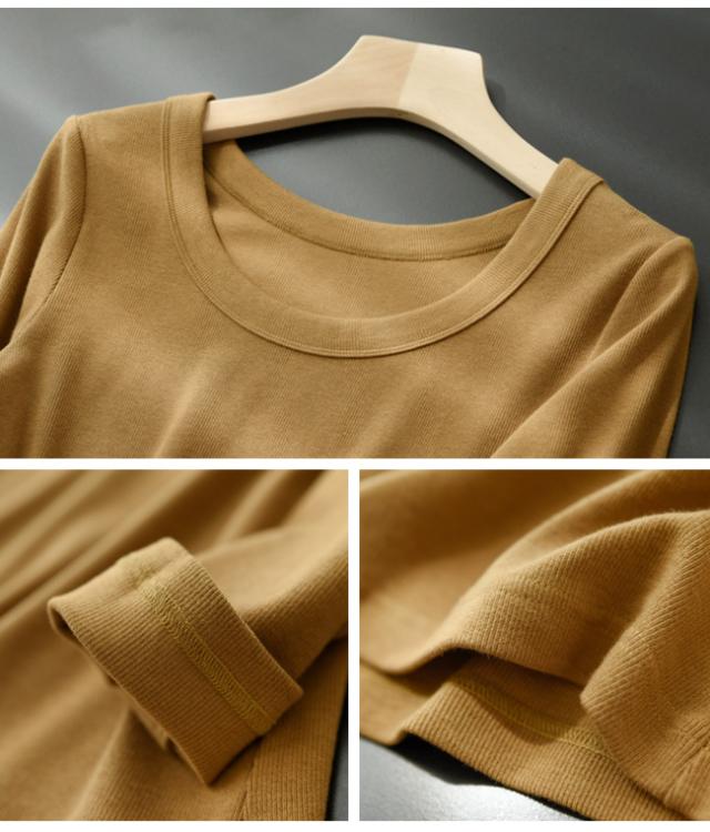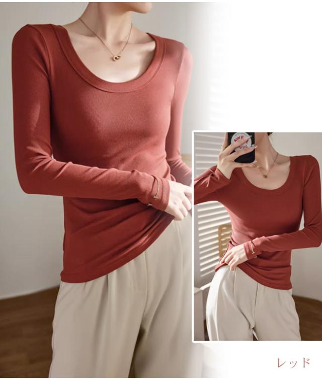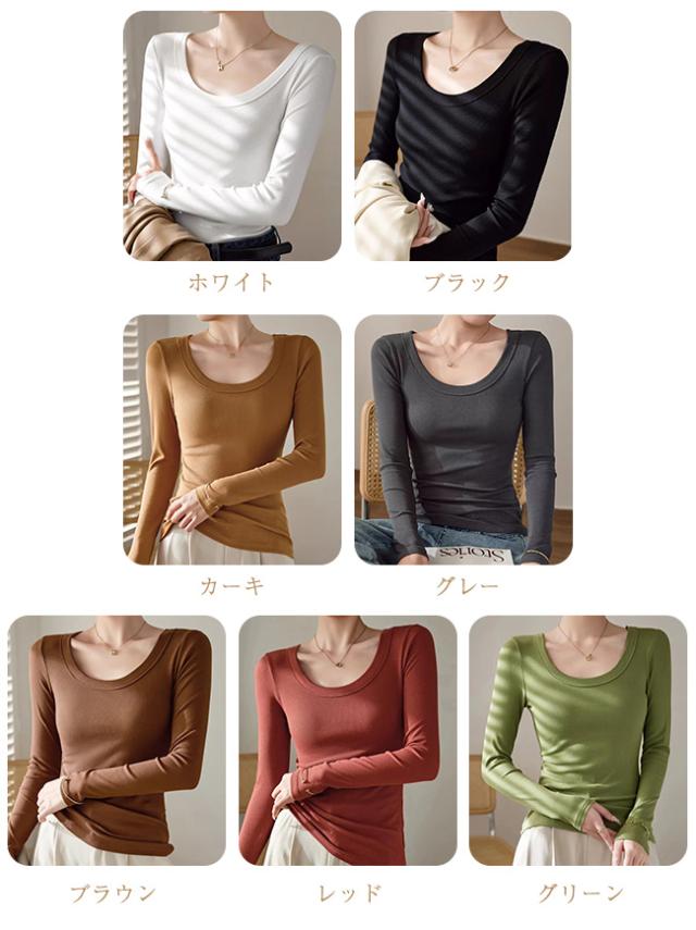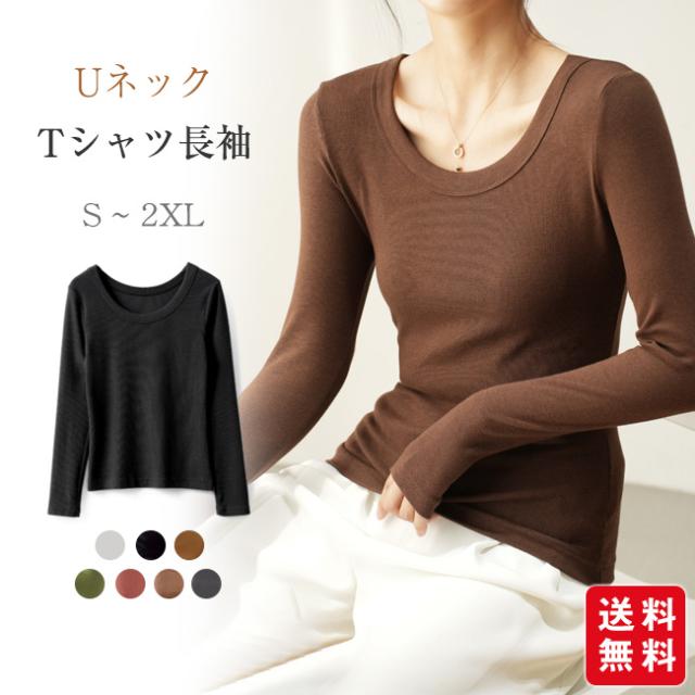 【春新作】長袖カットソー tシャツ uネック レディース リブ 肌着 重ね着 大きいサイズ 着回し きれいめ カジュアル 着痩せ インナー 日常用 通勤用
