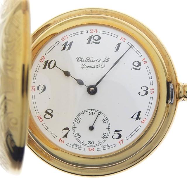 TISSOT ティソ 懐中時計 金メッキ 手巻き アナログ表示 ホワイト文字盤 懐中時計