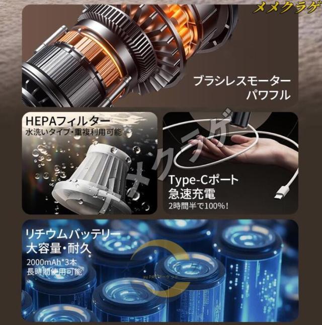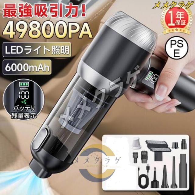 コードレス掃除機 ハンディクリーナー 49800PA 強力吸引 6000mAh ブラシレスモーター HEPAフィルター 残量表示 LEDライト照明 ハンド掃除機 車内掃除機