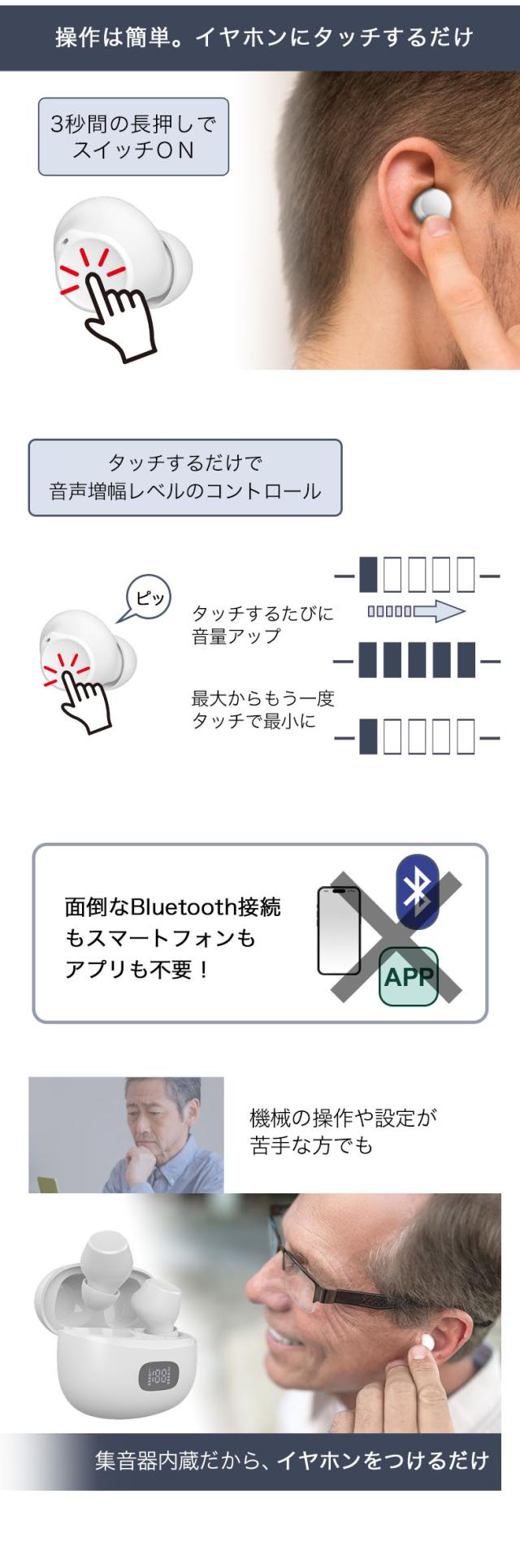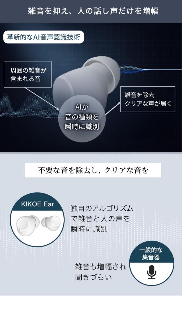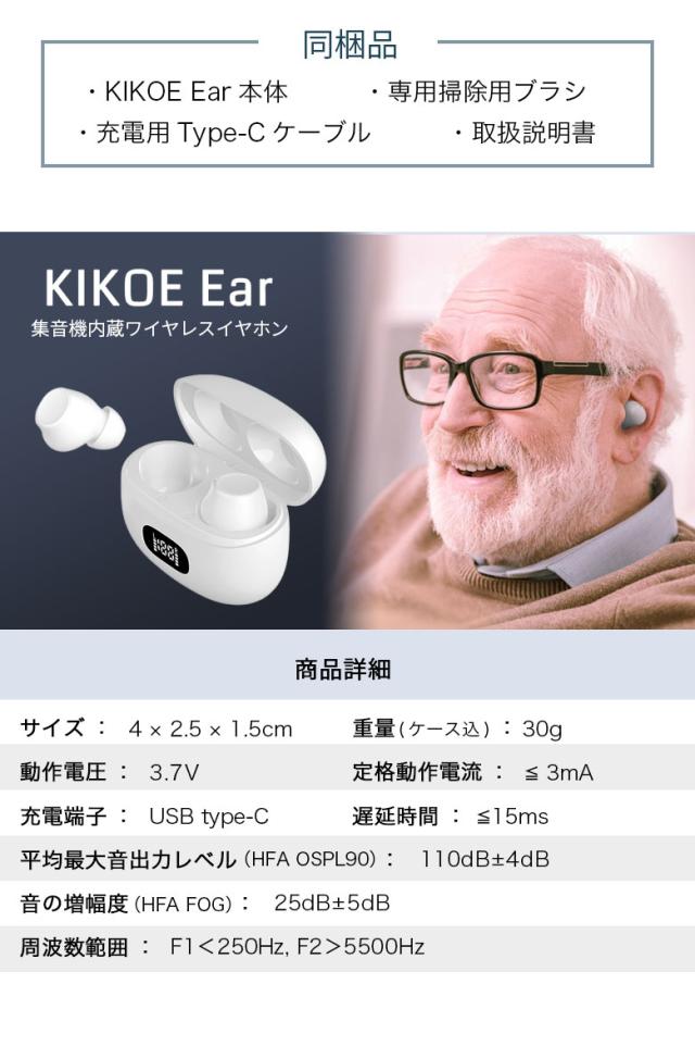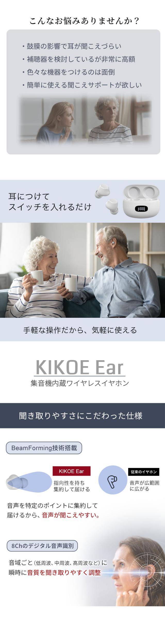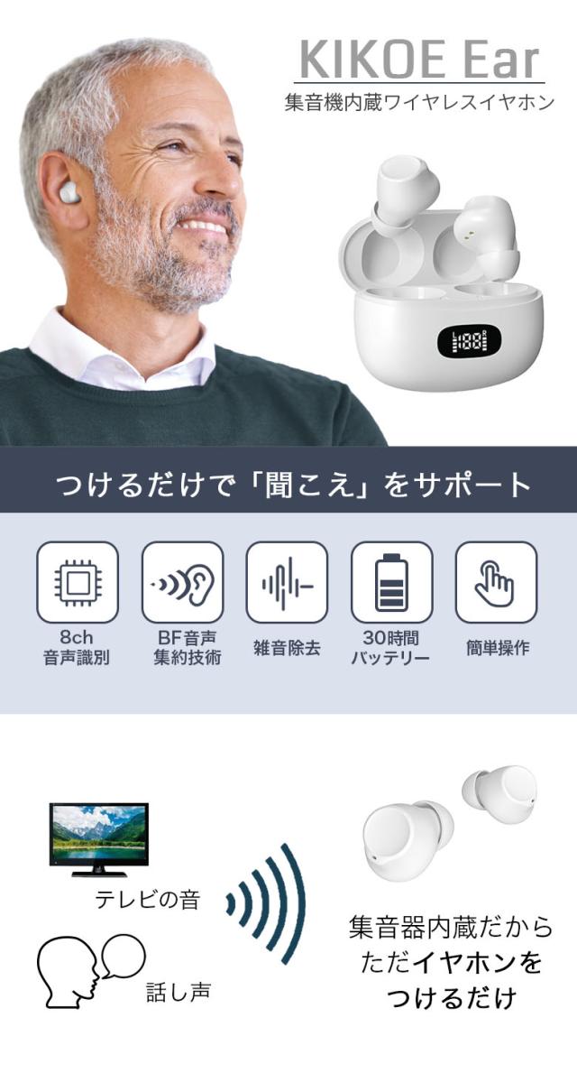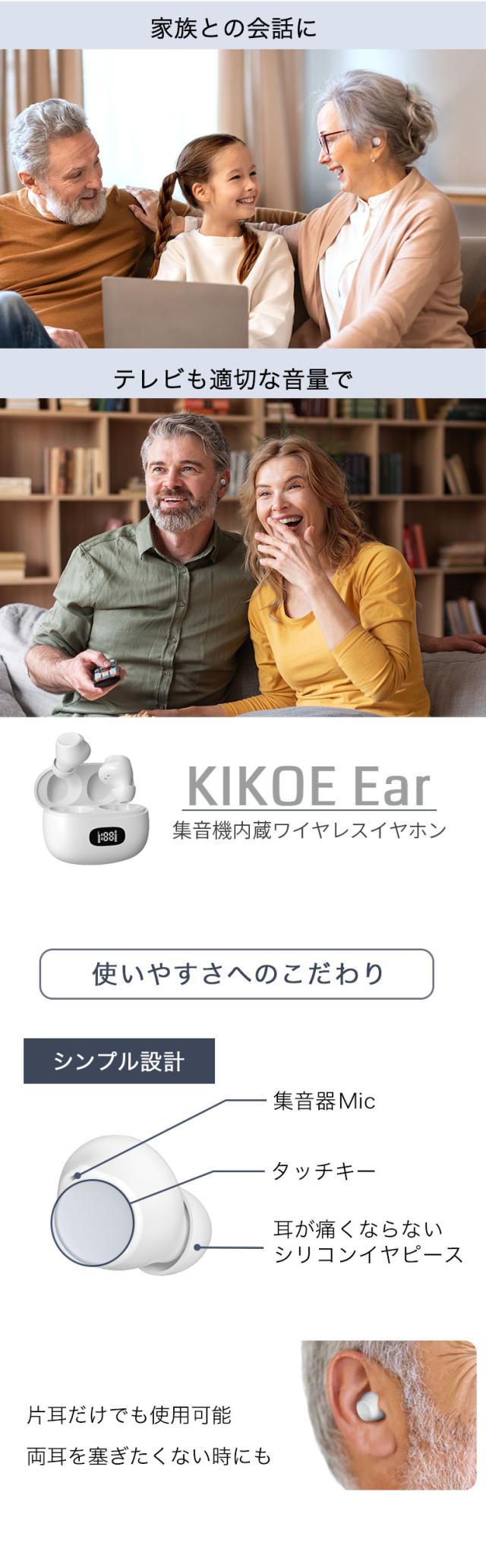 集音器 ワイヤレスイヤホン コードレス 高齢者 使いやすい 集音器内蔵 キコエイヤー KIKOE Ear 軽量 軽い コンパクト