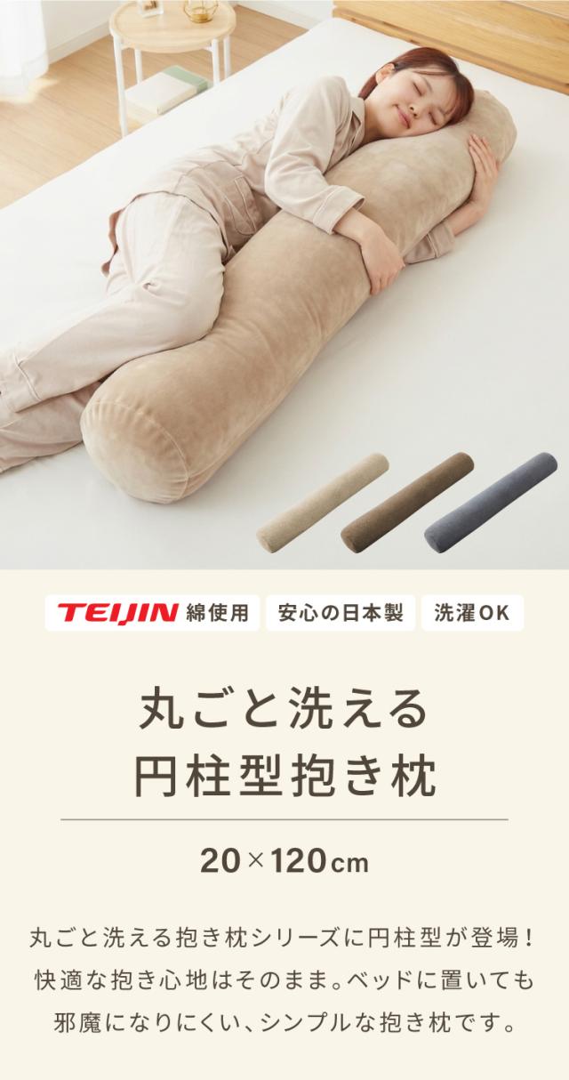 抱き枕 円柱クッション 120cm ロング抱き枕 帝人クリスター 円筒型 筒型 だきまくら 大きい ふわふわ 柔らかい 横向き寝 快眠 男女兼用 快眠サポート 妊婦 マタニティ 長い枕 まくら 枕 カバー洗える【送料無料】