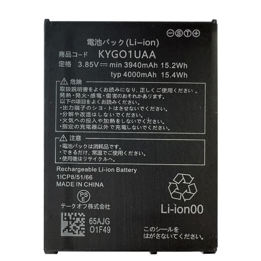PSE証明書: 当社のTORQUE 5G KYG01 batteryはPSE 認証を取得しています。