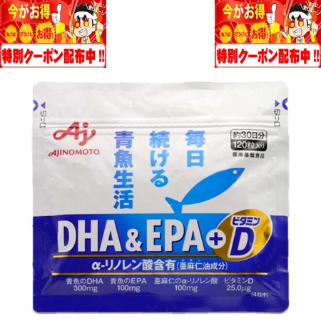DHA&EPA+ビタミンD 120粒 30日分 味の素株式会社 健康食品 サプリ サプリメント オメガ3 脂肪酸 α-リノレン酸 カプセル 魚不足 ビタミンD