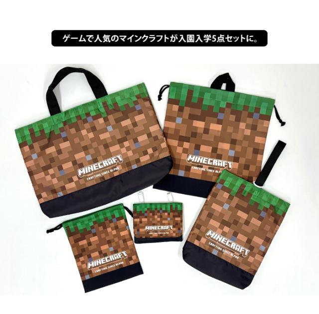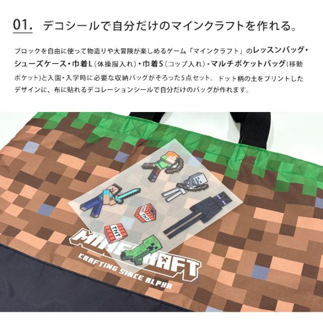 送料無料 マインクラフト シールデコレーション 入園入学 5点セット ブラウン 【 マイクラ 入学入園 キルト 入学セット 入園セット キッズ 入学グッズ 入園グッズ 入学準備 小学校 幼稚園 保育園 お稽古バッグ レッスンバッグ 体操服入れ お着替え袋 シューズバッグ 男の子】