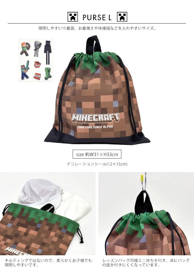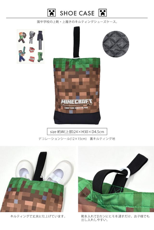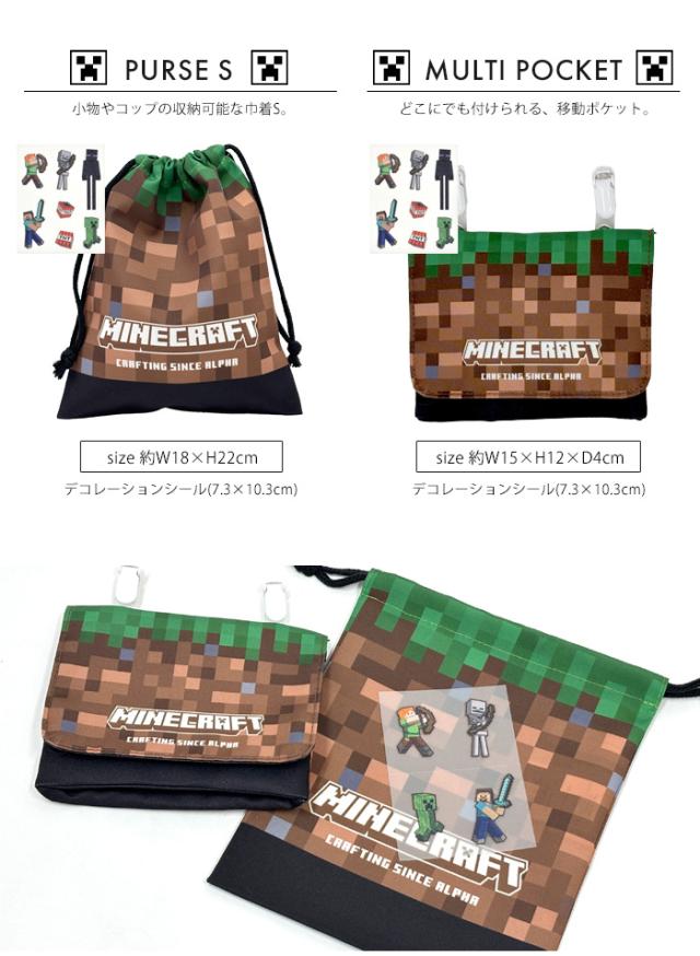 ブロックを自由に使って物造りや大冒険が楽しめるゲーム「マインクラフト」。ドット柄の土をプリントしたデザインに、布に貼れるデコレーションシールで自分だけのバッグが作れます。学校や習い事に使用できるベーシックなキルティングトートバッグ。園や学校の上靴・上履きのキルティングシューズケース。開閉しやすい巾着の巾着L。お着換えや体操服などを入れやすいサイズ。巾着Sは小物やコップの収納可能。ティッシュやハンカチを収納して持ち運べる便利なマルチポケット。