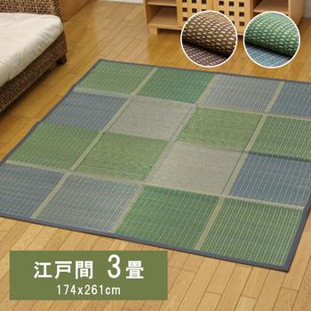 カーペット 純国産 掛川織 花ござ い草 敷物 カーペット 江戸間3畳 約174×261cm ベージュ グリーン 送料無料