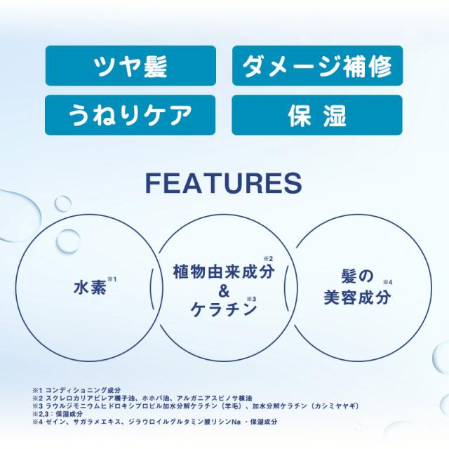 **水素(*1)×植物由来成分(*2)&ケラチン(3)×髪の美容成分(4)を配合