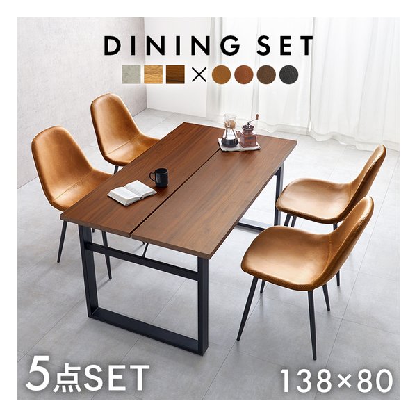 萩原 (ハギハラ) ダイニング5点セット [テーブル(138×80)+チェア4脚/ダークブラウン/ダークブラウン] LT-4771DBR-34DBR-5S