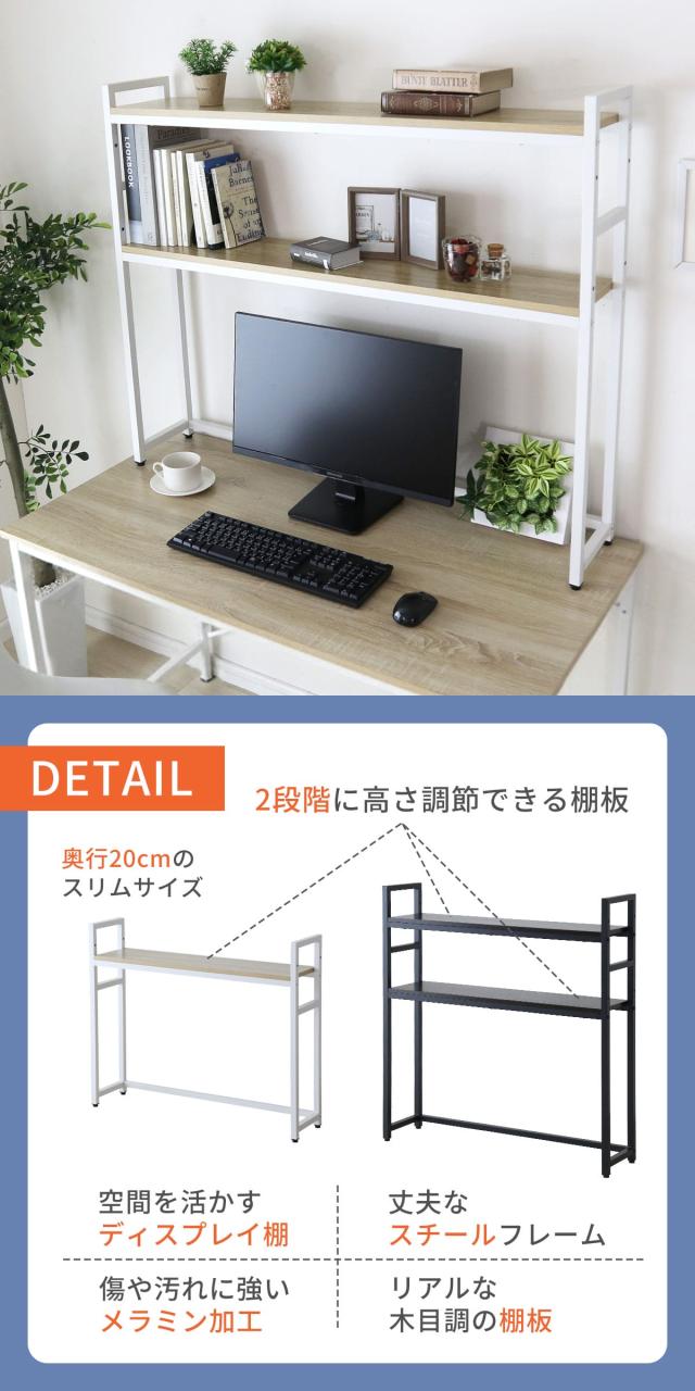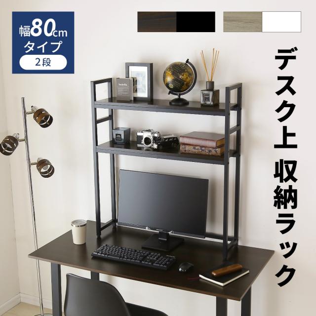 机上ラック 幅80cm デスク上ラック スリム 棚付き 高さ調整 ラック 2段 PCラック デスク収納 机上台 パソコン台 卓上 ディスプレイラック 収納ラック ノートPC 在宅 リオラ ドリス 送料無料 新生活 一人暮らし