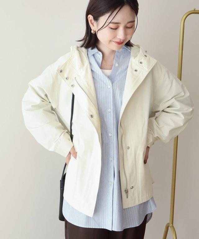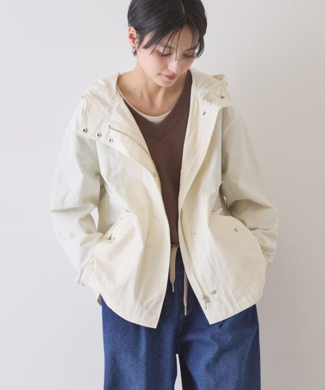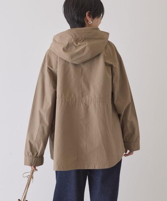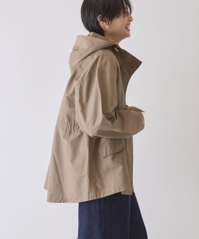 花粉防止+撥水加工を施した生地で仕立てたマウンテンパーカー。