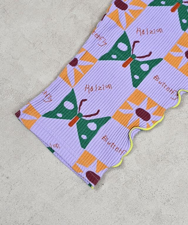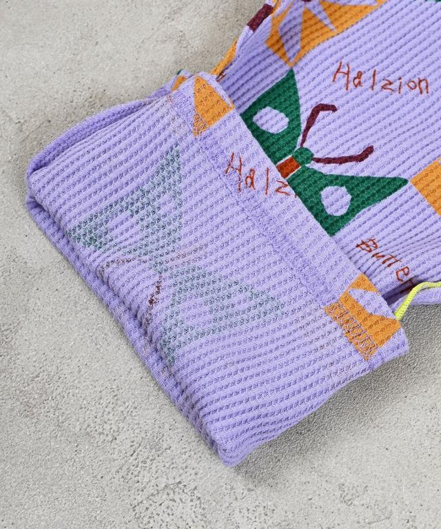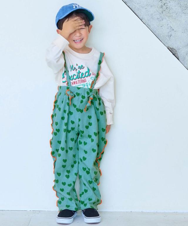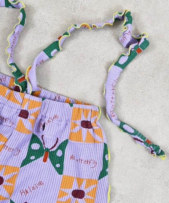 配色メローが映える総柄ワッフルサロペット