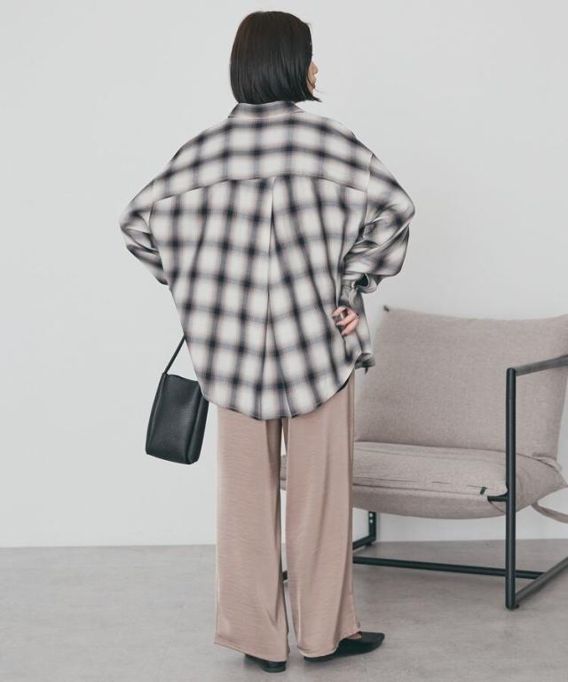 ソフトな手触りと優しいカラーリングで着こなしのアクセントに最適なチェック柄シャツ。背中にクロスタックを施し、ふんわり広がる女性らしいシルエットがポイントです。前後差のあるヘムラインが気になる部分をカバーしてスタイルアップを後押し。シワになりにくい素材でイージーケアが叶います。合わせ方次第でロングシーズン活躍するおすすめのアイテムです。