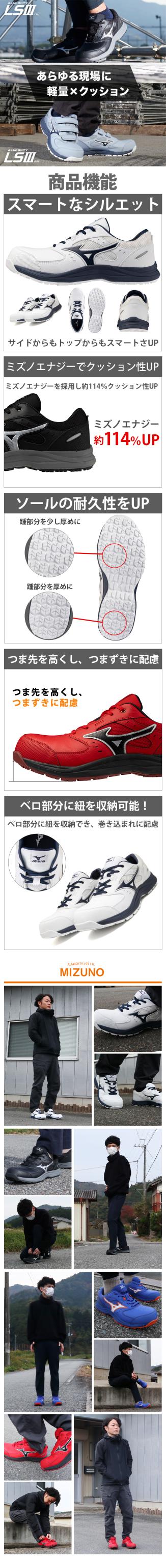 安全靴 ミズノ MIZUNO オールマイティ ALMIGHTY LS3 11L 2026年 新作 紐靴 JSAA規格 スニーカー メンズ レディース 新商品 軽量 クッション性 耐滑 滑りにくい 疲れにくい おしゃれ 樹脂先芯 建築 建設 倉庫業 運送業