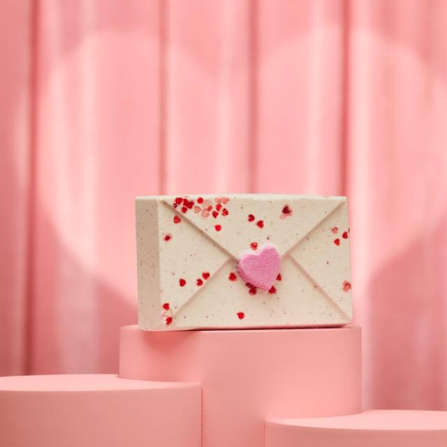 大好きなあの人に想いを伝えるラブレターは、なんと今しか手に入らないバスボム(入浴料)! カカオバターとココナツミルクを配合したミルキーバスが恋する心と乾燥肌をしっとり柔らかくします。