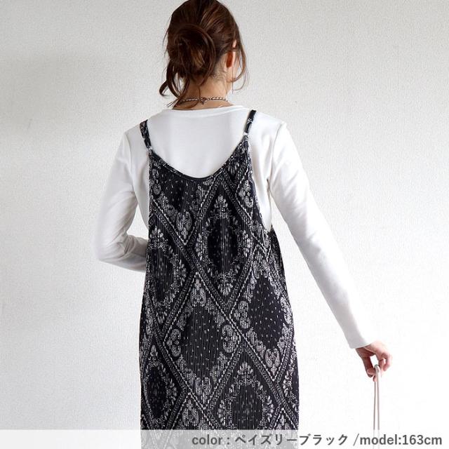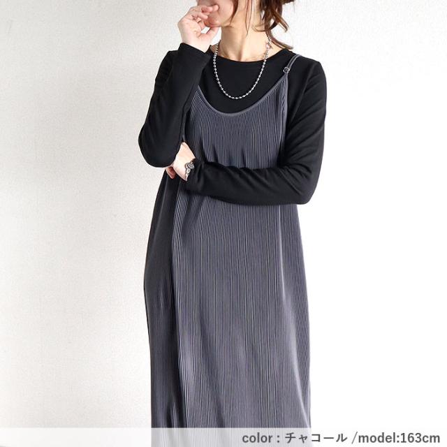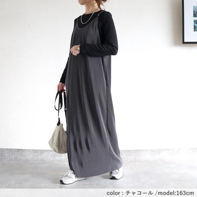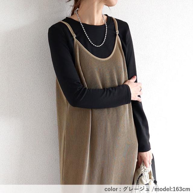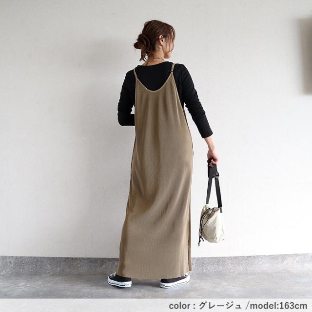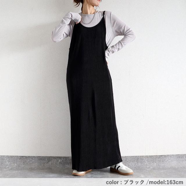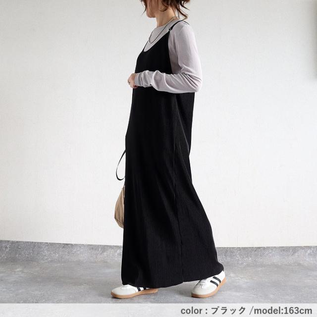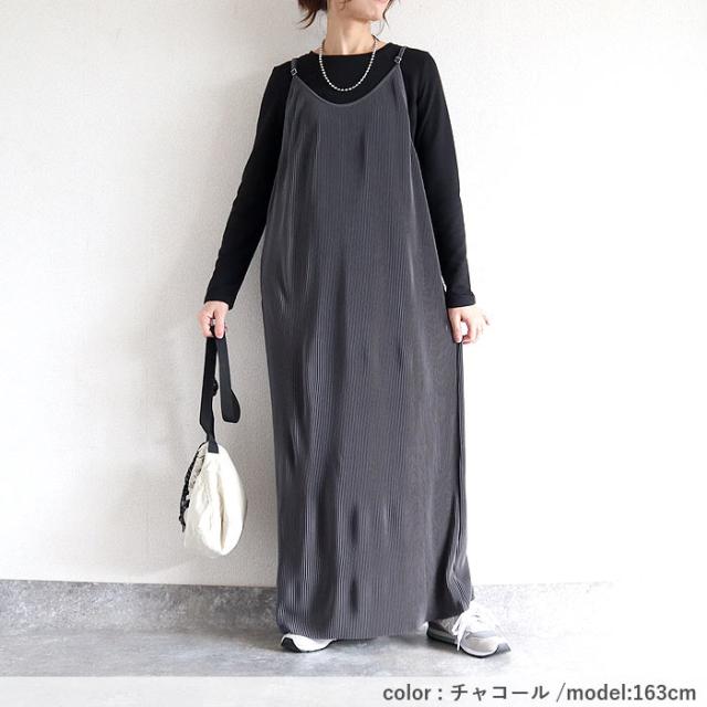 プリーツワンピース キャミソールワンピース ロング レディース 春 夏 秋 セルフカット[郵3]^w729^