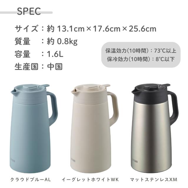 商品名: タイガー魔法瓶 真空断熱ステンレスポット PWR-A160 ステンレスポット 1.6L 保温 保冷 食洗機対応 真空断熱 魔法瓶 コーヒーポット お茶ポット キッチン ダイニング オフィス用