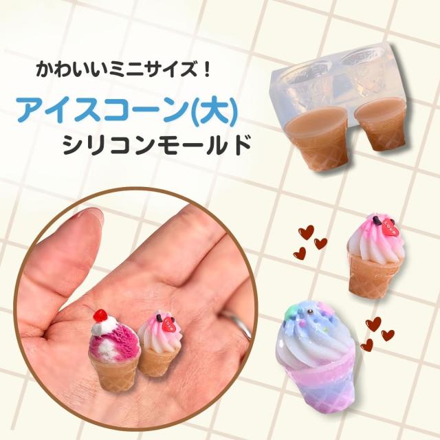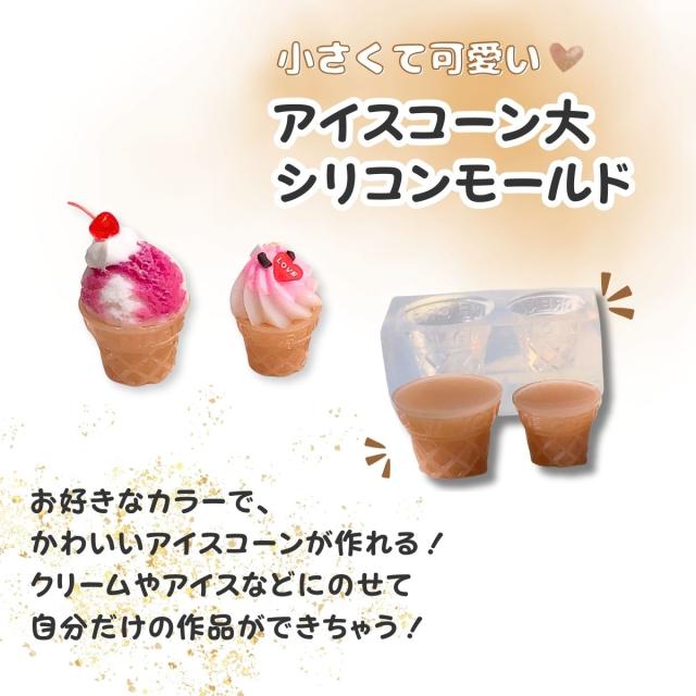 シリコンモールド アイスコーン (大) アイスクリーム ミニチュア レジン 型 スイーツ お菓子 アクセサリー パーツ キーホルダー アロマストーン アロマキャンドル キャンドル レジン型 エポキシ樹脂 石膏 ハンドメイド クラフト用 型枠