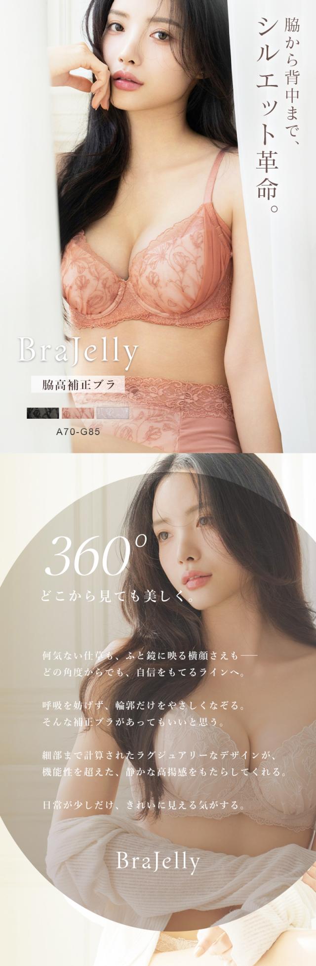 《BraJelly》フリリアレースブラ&ショーツ 上下セット 脇肉 脇高ブラ 脇肉スッキリ 補正ブラ ブラーショーツ レディースインナー【冬新作】