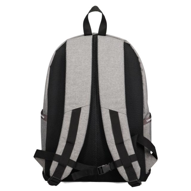 通学や部活動に最適なスクールリュック通学はもちろん、旅行やジム・タウンユースなどにも最適なバックパック。収納力に優れ、便利な仕様をいたるところに搭載。大きく開くメインコンパートメントのほか、ラップトップスリーブなど充実した収納力。通学・塾・部活などにオススメな機能性と収納力を兼ね備えた心強いアイテムとなっています。本体素材は軽量で取り扱いやすいナイロンを採用。撥水加工を施しているので、急な雨や自転車での移動時も安心です。背面がメッシュ仕様なので通気性に優れ、蒸れを軽減し長時間使用でも疲れを軽減させます。メインルーム入口も広く、A4サイズ対応で教科書やお弁当、着替えなど必要なものを収納可能。ノートPCやタブレットが収納出来るクッションポケットを装備。サイドポケットにはタンブラーや折り畳み傘を収納可能。重たい荷物でも肩からストラップがずり落ちないチェストストラップ。長めの引手を採用し、開閉もストレスフリー。フロントのDカンにはキーホルダーやICカード・パスケースなどを取り付けることができます。シンプルでスタイリッシュなデザインにCONVERSEスターロゴがアクセント。