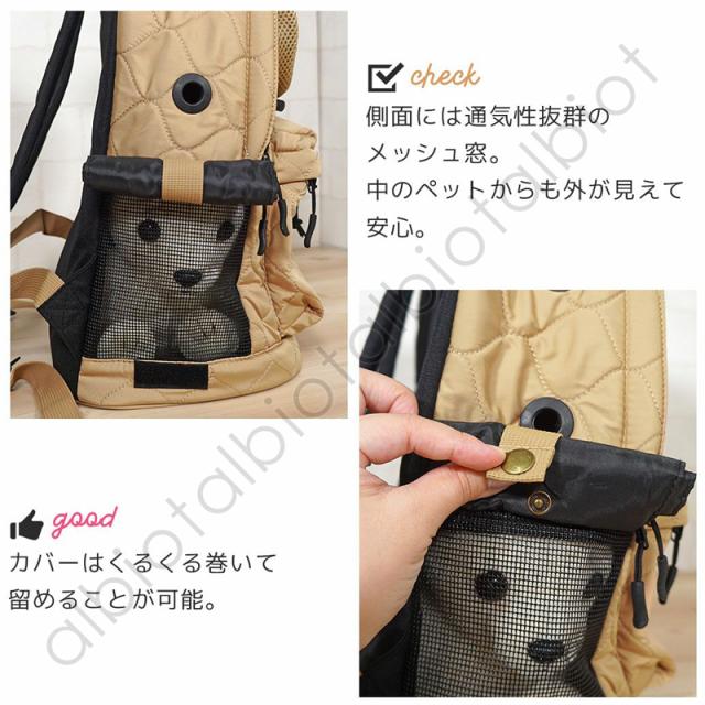 ※顔を出して利用する際は必ず首輪またはハーネス等に飛び出し防止金具をつけた状態でご利用ください。