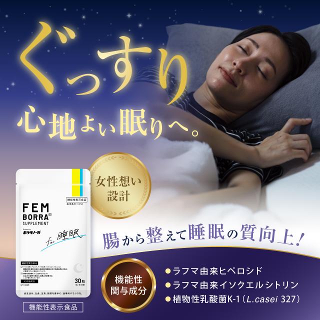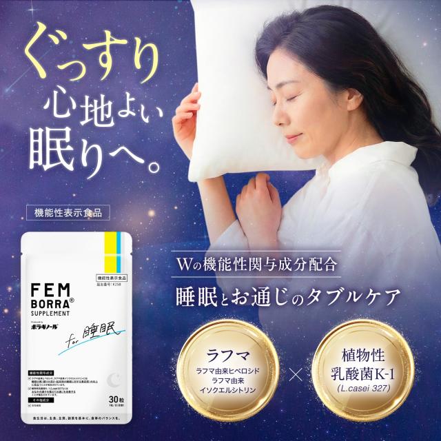【クーポンで20%OFF!】加齢に伴う睡眠悩み 睡眠の質向上 製薬会社発 ラフマ 機能性表示食品 30日分 乳酸菌配合 便通改善 ノンレム睡眠 更年期 睡眠悩み 目覚めの満足感 FEMBORRA フェムボラサプリメント 1日1粒 ボラギノールの会社 天藤製薬