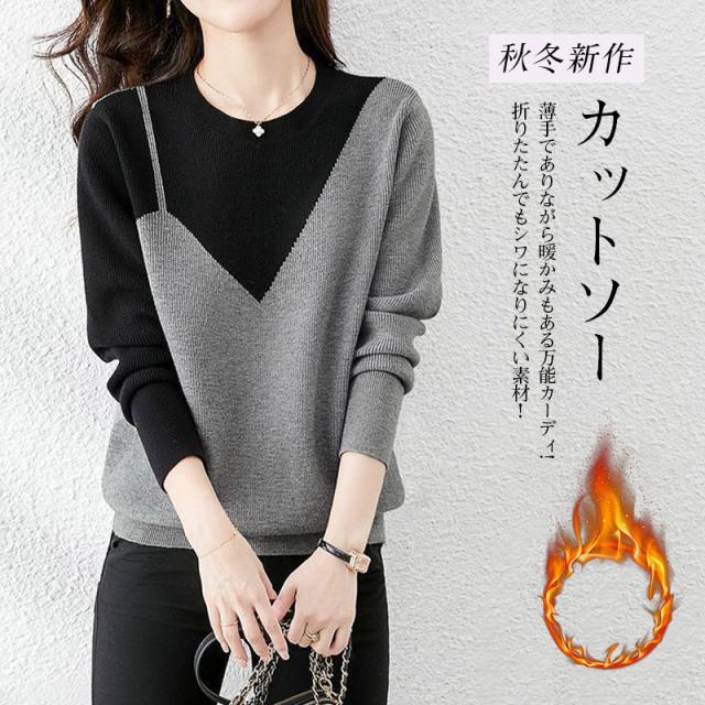 【キーワード】カーディガン カットソー 秋新作 クルーネック 長袖 レディース 春秋冬 軽量 羽織り 洗えるニットカーディガン 可愛い シンプル フェイクインナー プレゼント ギフト