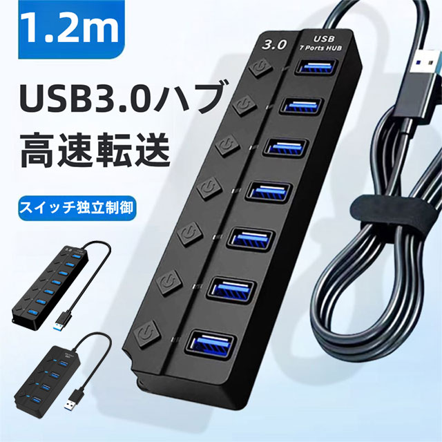 USBハブ 7in1 4in1 ハブ USB3.0ハブ 独立スイッチ 1.2m 30cm USB3.0 ドッキングステーション 4ポート 7ポート 5Gbps高速転送 USBポート 拡張 スイッチ付き
