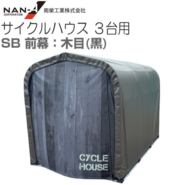 南栄工業 サイクルハウス3台用 SB 前幕:木目(黒) 天幕後幕:SB 約1.0坪 間口 1.56m 奥行 2.2m