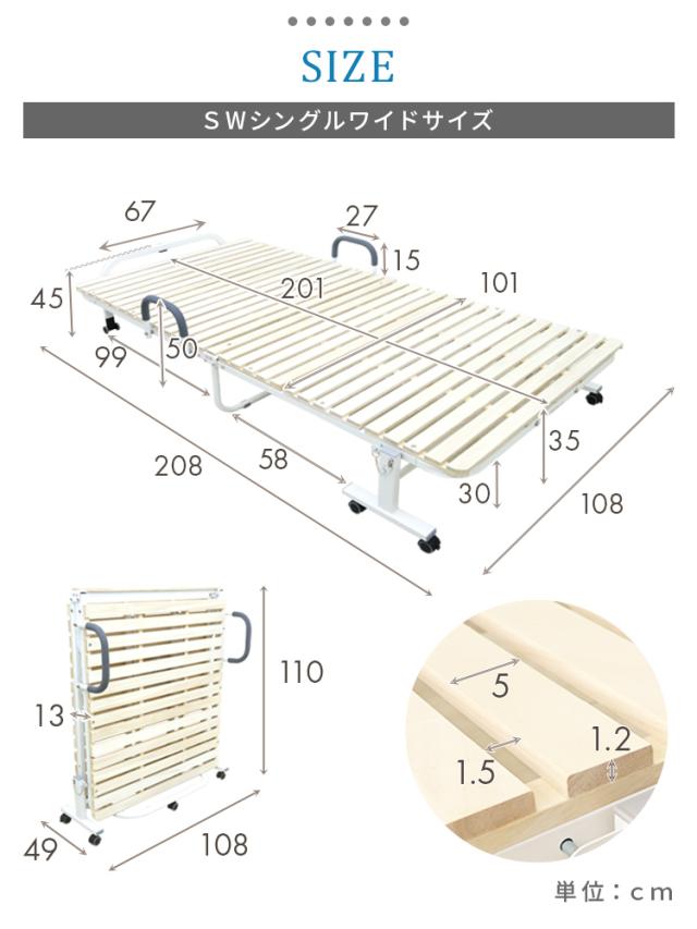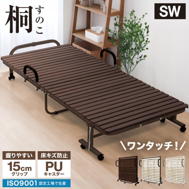 ベッド シングルワイド 折り畳み すのこベッド ワンタッチ 折りたたみベッド キャスター付き おしゃれ 折りたたみ 耐荷重300kg 木製 折り畳み すのこ スノコベッド 桐 簡易ベッド ベッドフレーム 来客 新生活 ワンルーム コンパクト SW 送料無料
