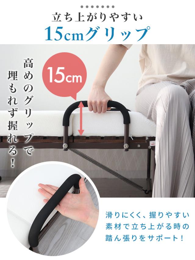 高めのグリップ&滑り止め加工で立ち上がりやすいすのこは面取り加工で、布団の引っかかりや怪我のリスクを軽減