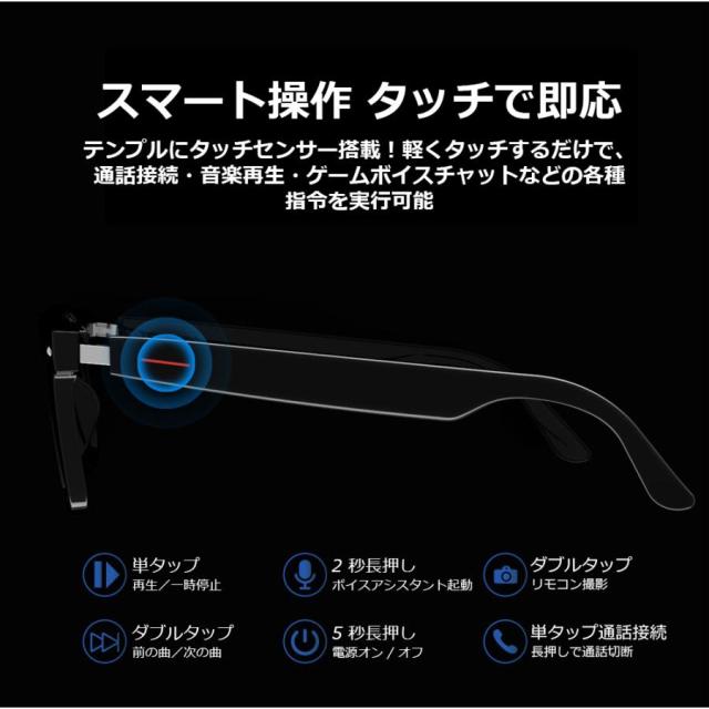 スマートグラス イヤホン スマートメガネ スマート通話グラス 音楽と通話 Ai 翻訳 タッチ ブルーライトカット AIメガネ ワイヤレスオーディオグラス 撮影 録画
