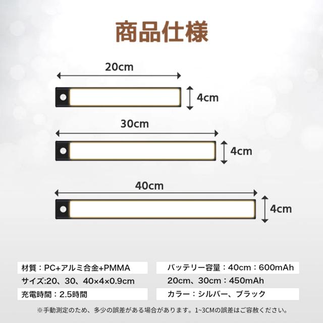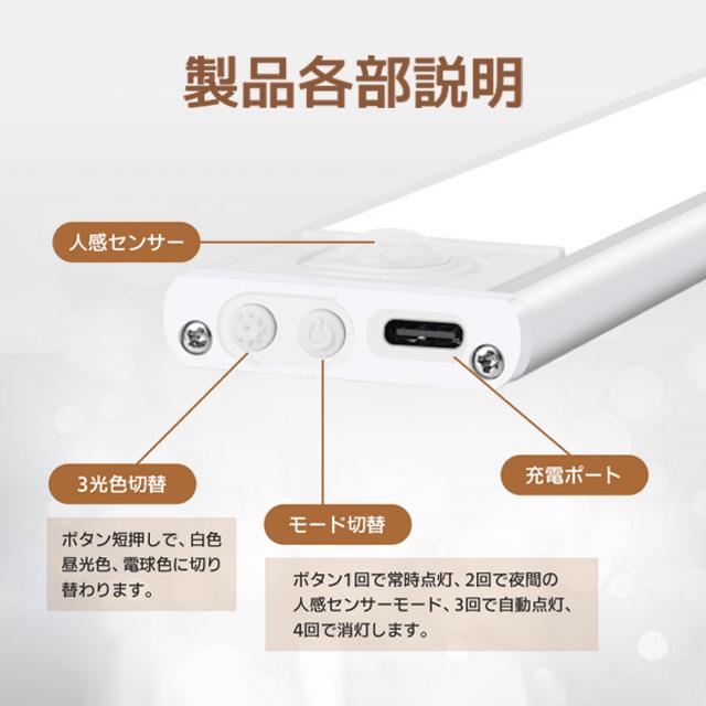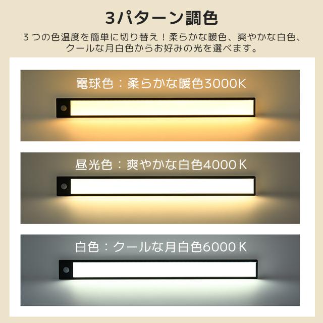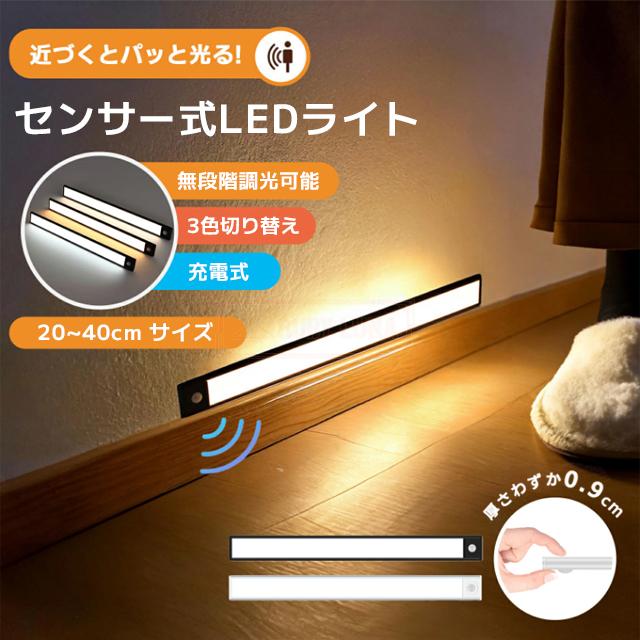 送料無料 センサーライト マグネット式 LEDセンサーライト 人感 センサーライト usb充電 led 3段階調色 室内 LEDライト ライト 防災 屋内 玄関 照明 自動点灯 停電 防犯20cmx4サイズ~40cmx4サイズ