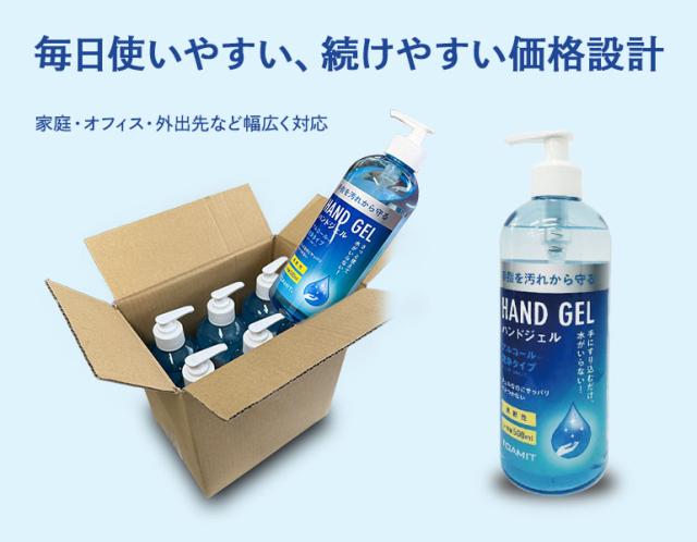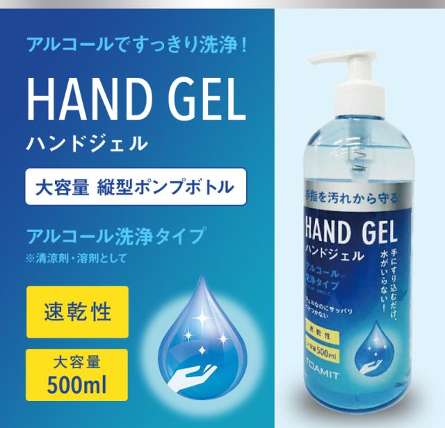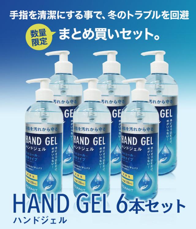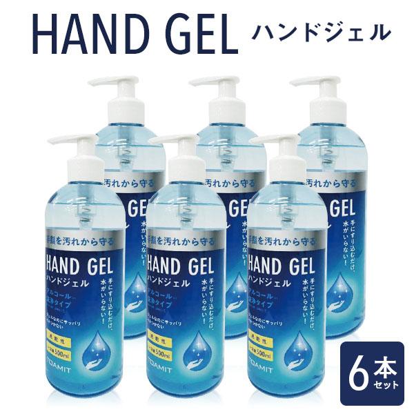 アルコール ハンドジェル 大容量 500ml ジェル アルコールジェル エタノール ウイルス対策 速乾性 手指 ポンプタイプ ×6本セット 防災