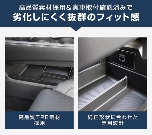 新型エクストレイルのセンターコンソール下部収納にぴったり収まる、車種専用設計のロアボックストレイです。