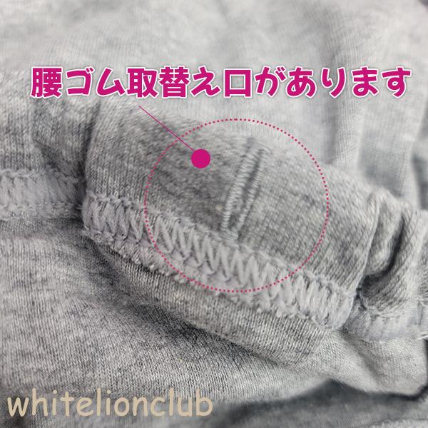 腰ゴムの取り換え口があり、腰幅に合わせて調節可能。