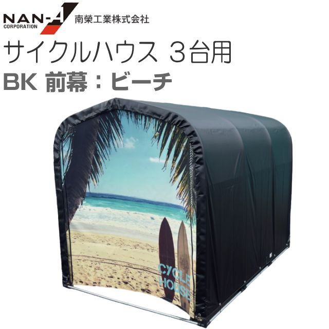 南栄工業 サイクルハウス3台用 BK ブラック 前幕:ビーチ 天幕後幕:BK 約1.0坪 間口 1.56m 奥行 2.2m