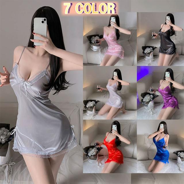 【フリーサイズ / 7色からお選びいただけます】ベビードール ハーフスリップ パジャマ ネグリジェ ナイトウェア セクシー レディース スリップ ランジェリー Tバック付き 誘惑 下着 Vネック サテン かわいい 部屋着 寝間着 大きいサイズ